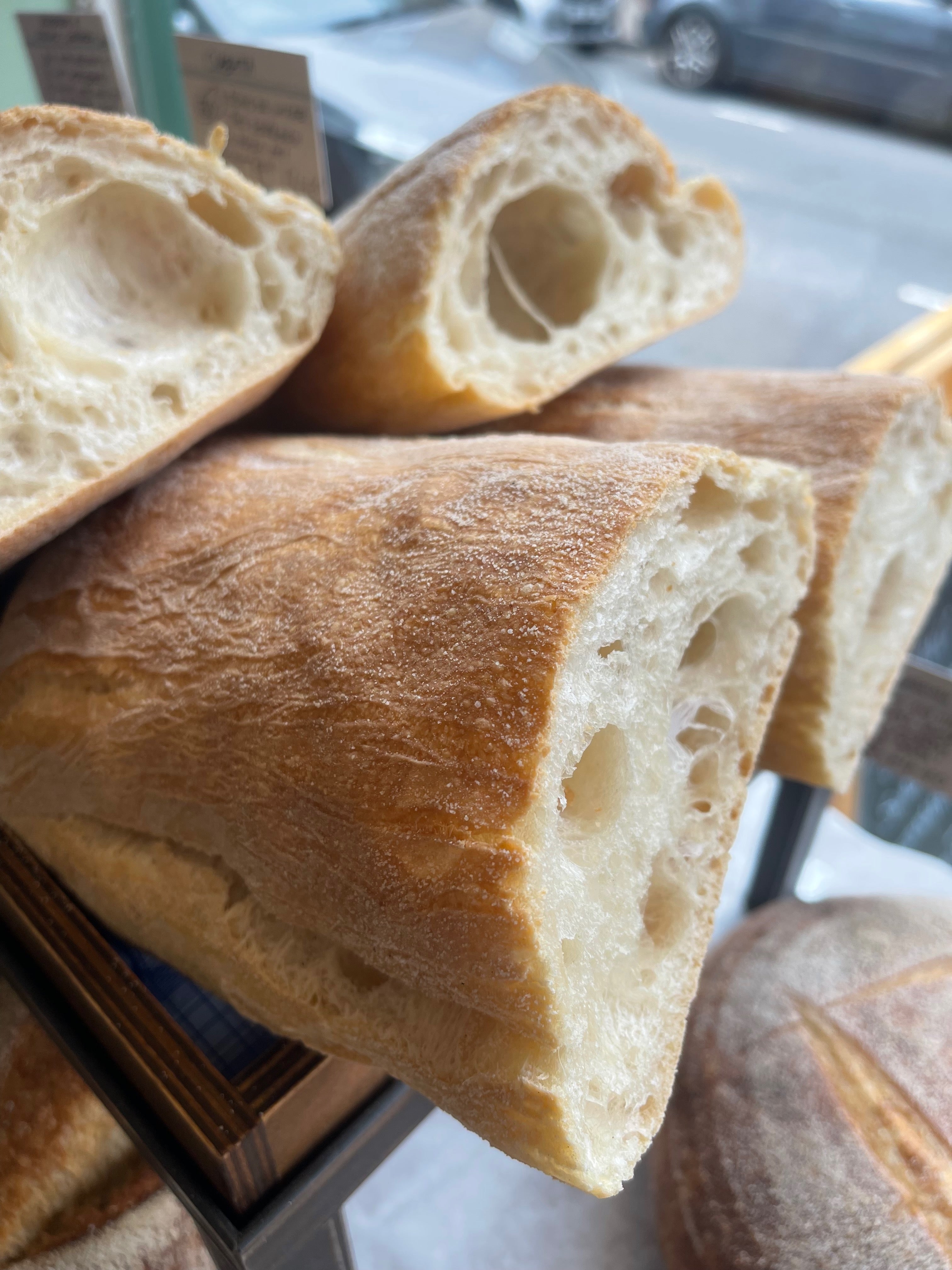 Our ciabatta is a celebration of Italian rustic baking—light, airy, and full of character. With its flour-dusted crust and open, chewy crumb, this hand-shaped loaf is perfect for soaking up olive oil, building bold sandwiches, or serving warm alongside soups and antipasti. Made with a slow fermentation process that enhances flavour and texture, ciabatta offers a subtle tang and satisfying bite. It’s a versatile staple that brings artisan charm and Mediterranean soul to our store and your dining table.